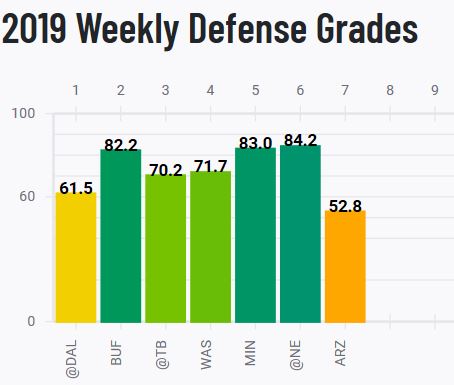 El partido que más me sorprende es el que perdemos contra Vikings, al equipo le hacen muchas yardas de carrera pero Dexter no hace un mal partido. En este hace su segundo sack, con dos tackles, tres asistidos y les para dos veces. Contra New England y Arizona los números son similares, siendo el de Arizona el partido con el Grade menor según PFF.