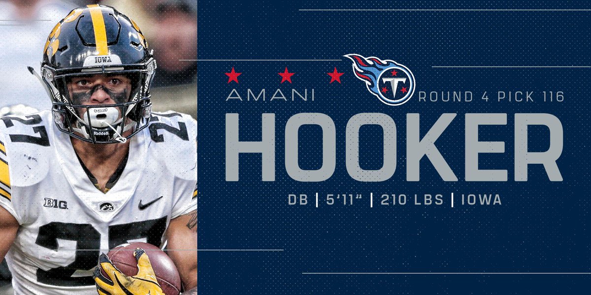 Proyección en el equipo: Él mismo lo ha dicho y Kerry Coombs (DB Coach) lo ha confirmado: va a jugar en casi todas las posiciones. Su posición la podríamos definir como “modern Strong Safety”, un híbrido LB/S. Carece del rango para jugar en single high (Cover 1), pero para eso ya está Byard. Hooker va a ser un jugador que esté cerca de la LOS. Buen lector del juego para reconocer y parar la carrera. Buenos instintos para cubrir zonas medias. Buenas capacidades para emparejarse con TE en man-to-man. En definitiva, no será titular pero jugará mucho en los paquetes “Big Nickel”, con Byard en profundo, Vaccaro en el box y él como slot CB. Además tiene experiencia retornado kicks y punts.