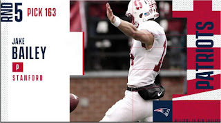 El segundo punter elegido en el draft y lo más sorprendente, no es zurdo. Es diestro. El plan con Bojorquez el año pasado de hacerle pasar un año practice squad y tener a Ryan Allen para en algún momento cambiarlo se truncó cuando Buffalo selecciono a Bojorquez tras los cortes de verano a los 53. Pero este año parece que Bill va en serio. Así que riesgo para Ryan Allen. Y confirmación que New England ve la quinta ronda para casos excepcionales y equipos especiales. Elegimos un long snapper en quinta hace unos años.
