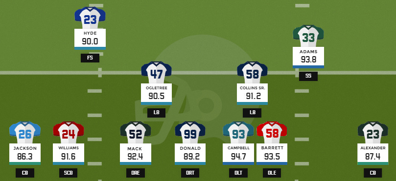 Destacó en cobertura del pase donde sólo permitió una recepción pero que implicaba la pérdida de 6 yardas y realizó una intercepción. El QB Rating cuando el pase fue en su dirección fue de 2.8. Por si fuera poco, realizó 3 placajes para pérdida de yardas y no falló ningún placaje. Puntos de Fantasy: 17