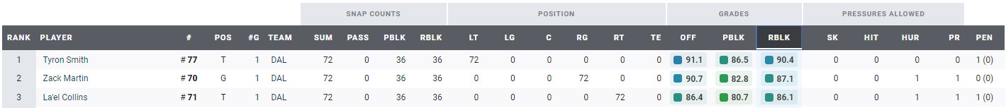 Casi toda la línea de Cowboys estuvo fenomenal ante Dolphins, sobre todo bloqueando para conseguir 235 yardas de carrera.