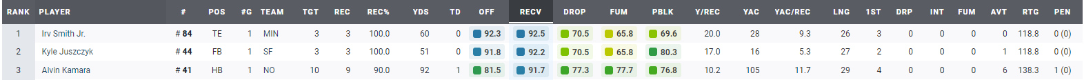 1.- Irv Smith – TE – Minnesota Vikings: 92,5
