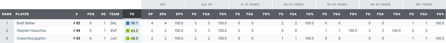 1.- B. Maher – K – Cowboys: 90,7