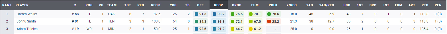 1.- D. Walker – TE – Raiders: 93,2