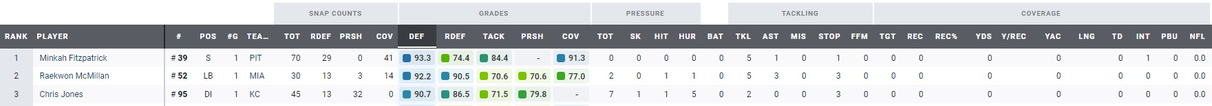 1.- M. Fitzpatrick – S – Steelers: 93,3