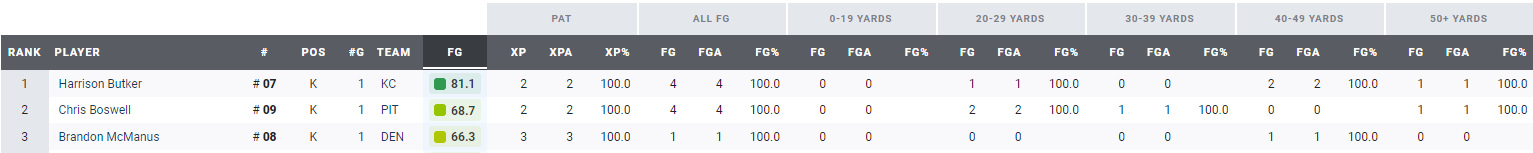 Convirtió todo, 2 XP y 4 FG, el más lejano de 51 yardas. Puntos de Fantasy: 16