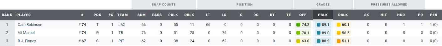 Pass Block: C. Robinson – LT- Jaguars: 89,1