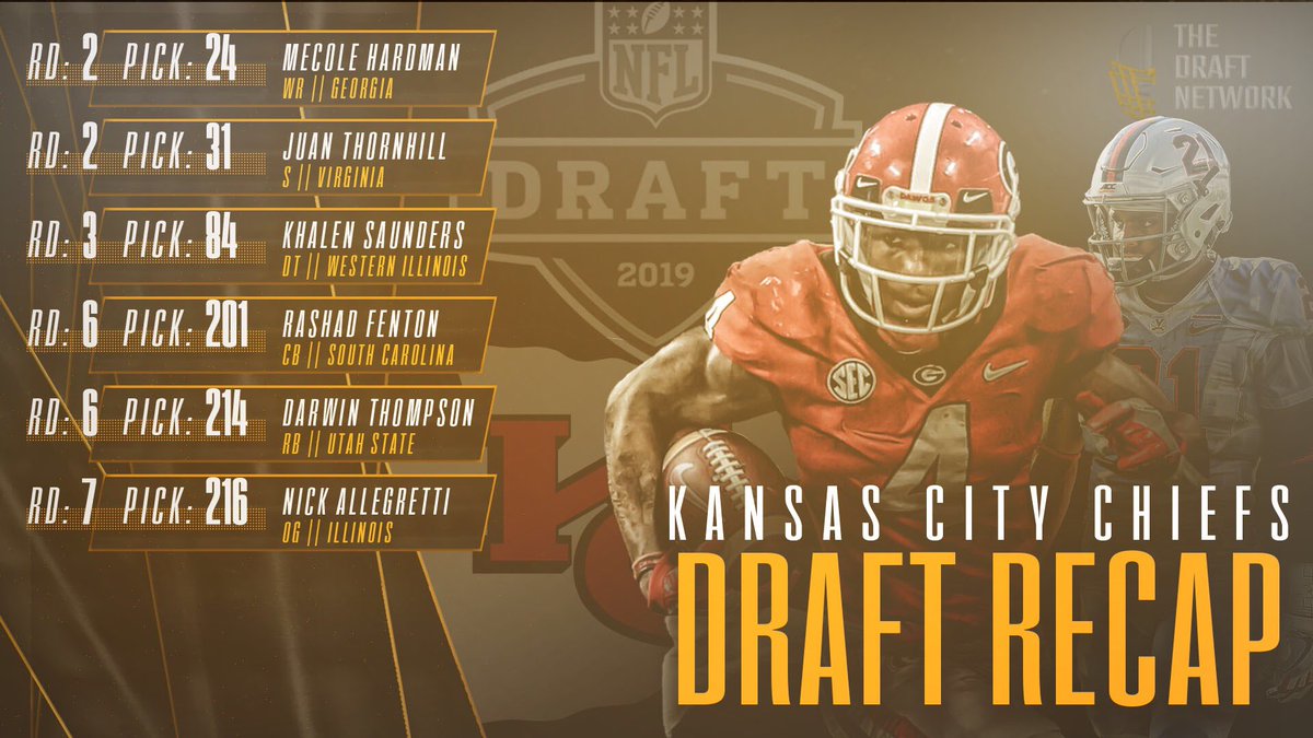 Una contratación de esa magnitud tiene como objetivo buscar alzar el Lombardi la temporada entrante, y en líneas generales, en esa dirección fue el draft, buscando sumar talento tanto en el costado defensivo como en el ofensivo, invirtieron sus 6 picks en tres jugadores para la defensa y otros tres para el ataque. Con su primer pick escogieron al WR velocista de Georgia, Mecole Hardman.