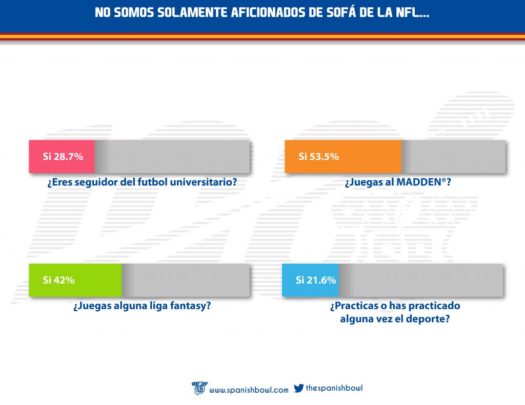 El año pasado realizamos el I Estudio de aficionados a la NFL en España. Fue todo un éxito y descubrimos cosas muy interesantes del comportamiento del aficionado español a la NFL. En 2019 nos propusimos realizar de nuevo el mismo estudio para ver las variaciones que había respecto al año pasado. Los datos son muy interesantes (Muestra de 4.000 personas), por lo que sin más dilación os presentamos el II Estudio de aficionados a la NFL en España.