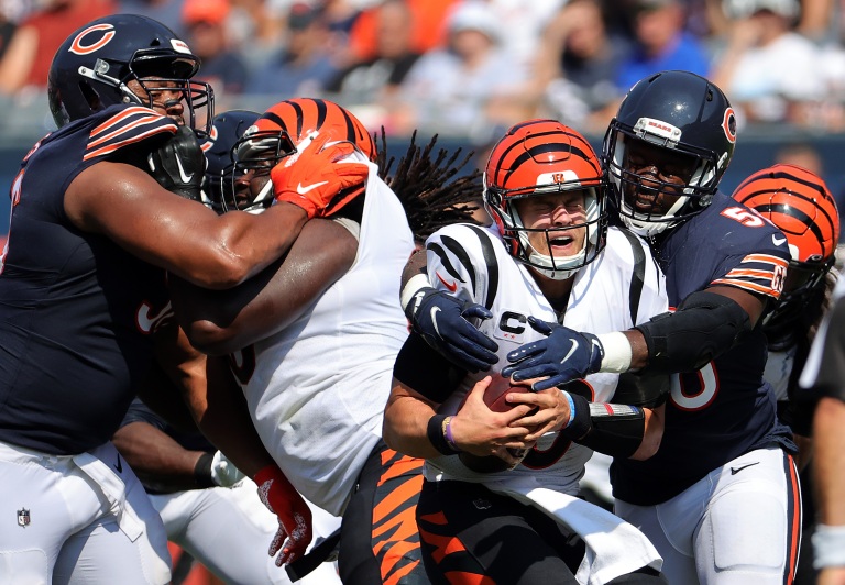 Roquan Smith capturando a Joe Burrow. Foto Jonathan Daniel/Getty Images. - El equipo tiene muchas áreas de oportunidad en puestos críticos, como por ejemplo el CB2, ya que Kindle Vildor se ve errático e inconsistente. No se cuenta con un CB que cubra bien la posición de slot. El centro Sam Mustipher ha iniciado mal y se ha visto rebasado por los defensores rivales.