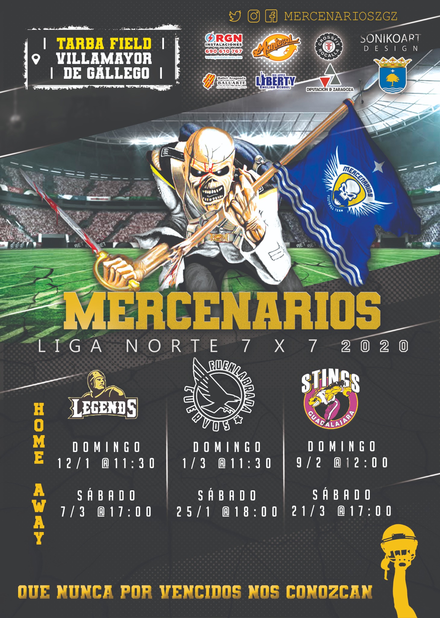 Mercenarios que empezó a entrenar en septiembre, en su segundo año esta centrado en añadir gente al proyecto, tanto jugadores como en el staff técnico; el resultado de la captación de nuevos jugadores esta siendo satisfactorio y poco a poco se amplia la plantilla, ya que no es poca la gente que se acerca al Tarba de Villamayor a probar el football americano. En el apartado técnico la incorporación del Coach Raúl Cester a la escuadra mercenaria es una gran noticia ya que trabajará codo a codo con el entrenador James Rogers, que continua con paso firme en mercenarios y entre los dos, que ya se conocen de su etapa en Zaragoza Hornets, seguirán con el reto de llevar a lo más alto a este equipo.