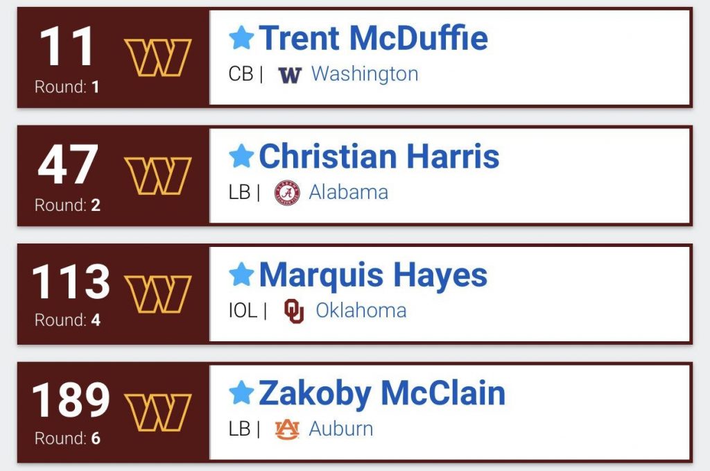 No les voy a mentir, vía draft el panorama no pinta muy bien, los Commanders sólo tienen dos selecciones dentro del Top 100 (11°,43°) este draft debe de enfocarse en traer jugadores defensivos que hagan un impacto inmediato y recuperar el nivel de la defensa mostrada en el 2020, necesidades: CB, LB, IOL, WR, DL.